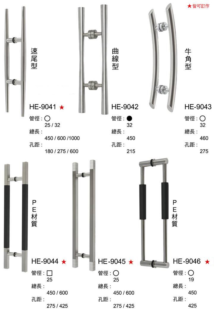 宏易玻璃五金行 -- 造型系列 HE-9041~46